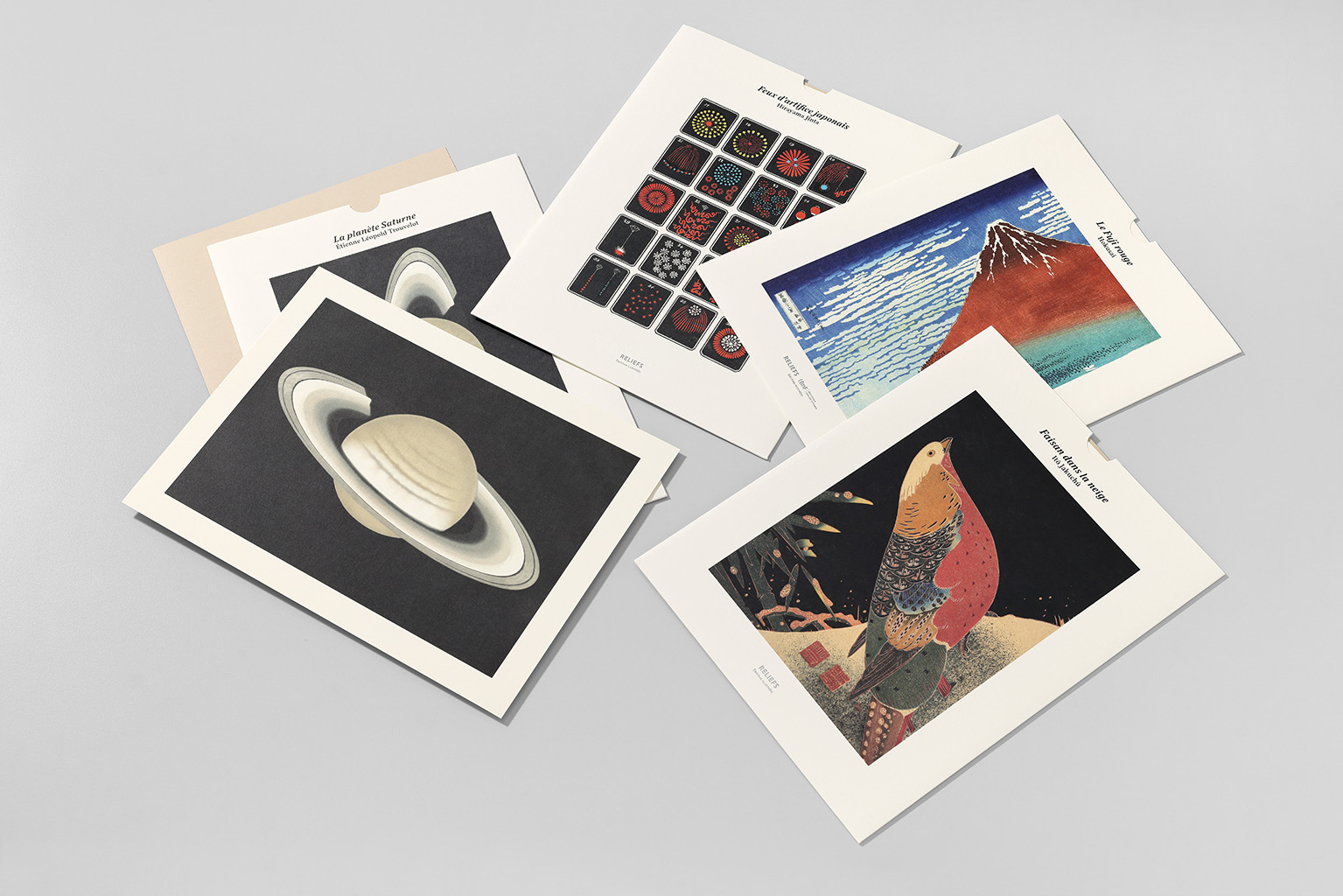 12 planches illustrées dans l’univers de Reliefs, issues d’un même ouvrage et imprimées sur un papier d’art 300 g, à offrir, envoyer ou collectionner. Elles sont au format carte postale et accompagnées d’un livret de quatre pages reprenant un texte autour de l’œuvre originale.