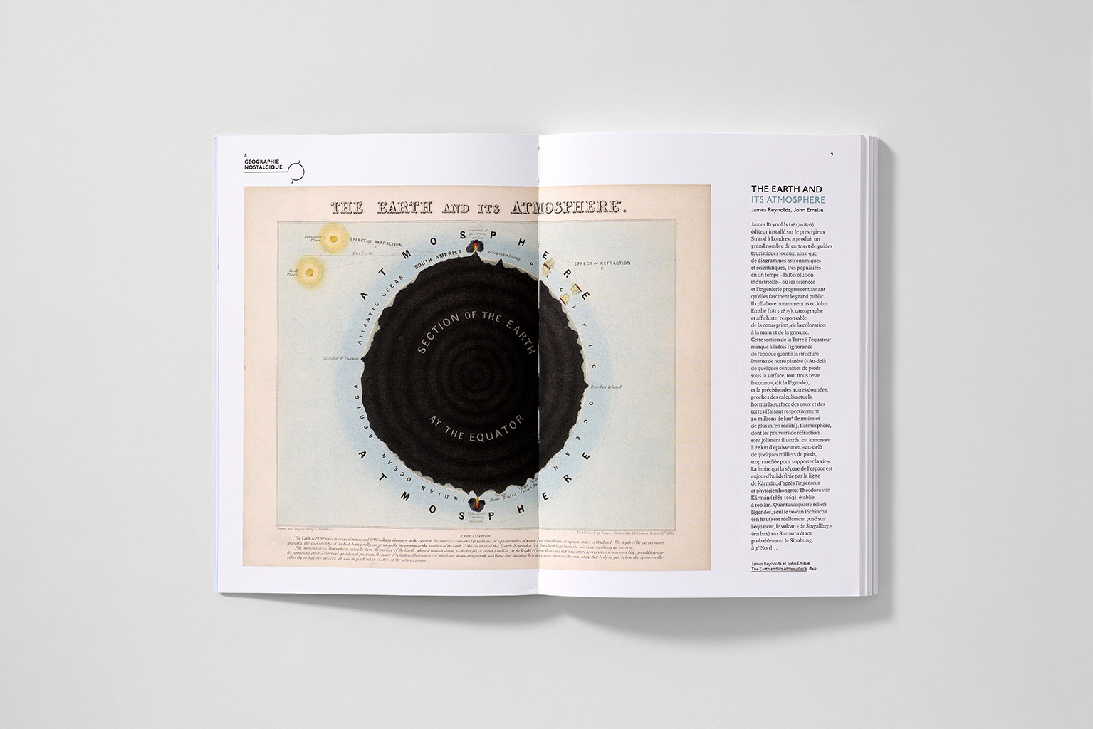 En lien avec chaque collection annuelle de Reliefs, les cartes Géographie nostalgique font écho à la rubrique qui porte ce nom dans les premières pages de la revue. Elles proposent de découvrir en grand format des trésors de la cartographie ancienne. Se présentant sous la forme d’un poster, avec une carte au recto et son histoire au verso, issues des quatre coins du monde, elles sont imprimées sur des papiers haut de gamme. Les cartes Géographie Nostalgique sont distribuées dans un élégant fourreau aux finitions dorées et cuivrées.