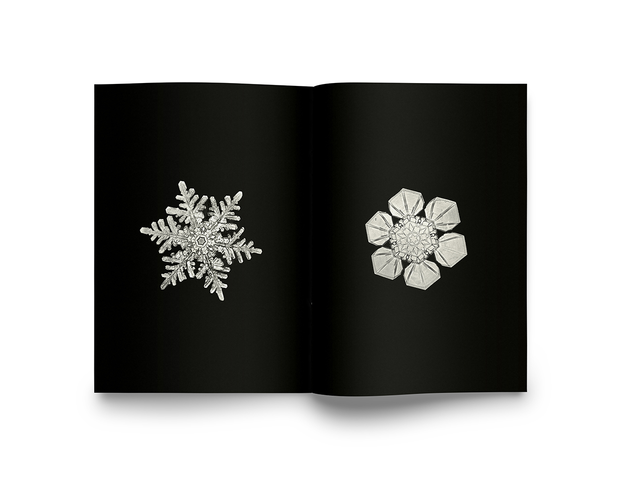 En 1885, à 20 ans, l’Américain Wilson Alwyn Bentley réalise la première photo au monde d’un flocon de neige. Jusqu’à sa mort, il capture plus de 5 000 cristaux. Associant un appareil photo et un microscope, il observait un protocole immuable, impliquant par exemple une éclisse de balai, une plume de dinde, ou une mise au point par un système de cordes et de poulies. Célébré par les magazines, les joailliers et les fabricants de textiles de son temps, également pionnier de la photographie des gouttes de pluie, Bentley a écrit : “Chaque cristal de neige est un chef-d’œuvre et aucun motif ne se répète. Quand un flocon fond, le motif est perdu à jamais.”