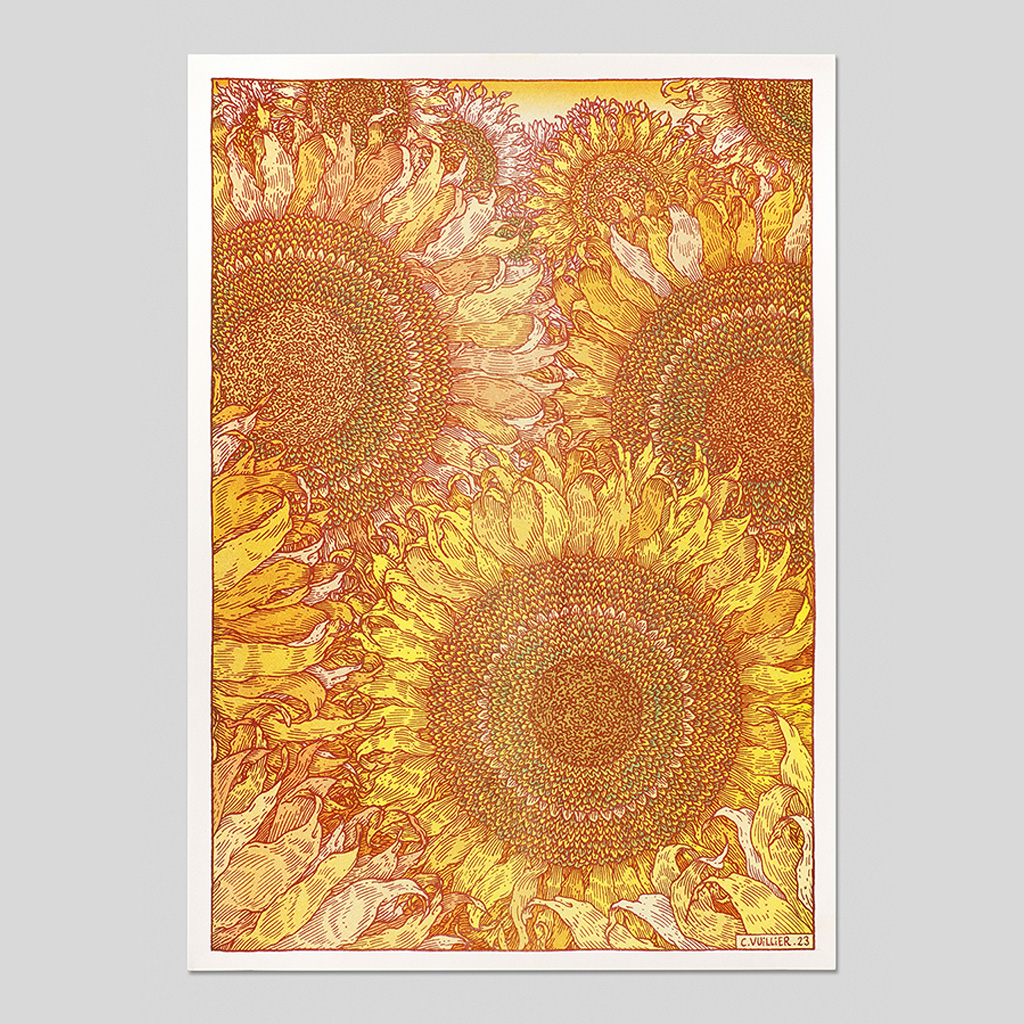 Grandi dans les Hautes-Pyrénées, l’auteur et dessinateur de livres illustrés a fait des études à l’école Estienne et aux Arts décoratifs de Strasbourg avant de s’installer à Paris et d’y fonder le collectif 3 fois par jour. Ses images minutieuses et grouillantes de détails entraînent le lecteur dans un univers onirique et singulier. Clément Vuillier collabore avec Reliefs depuis les premiers numéros de la revue.
