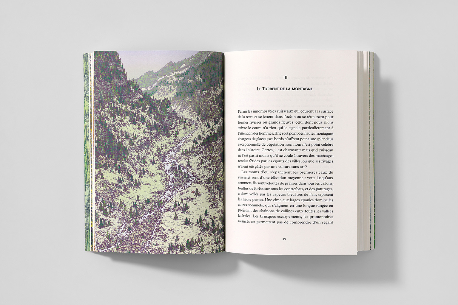 Dans Histoire d’un ruisseau, publié en 1869, Élisée Reclus fait bien plus qu’un ouvrage didactique de géographie sociale, incluant la dimension humaine dans l’analyse géographique. Au fil des vingt chapitres, partant de la source pour atteindre le cycle de l’eau, il multiplie les regards sur l’eau : description des reliefs, des formes du cours d’eau, des activités humaines, observation naturaliste, réflexion philosophique et politique… À la descente en altitude correspond une montée en généralité, et l’ouvrage s’achève sur une vision utopique englobant le devenir monde et l’avenir de l’humanité.