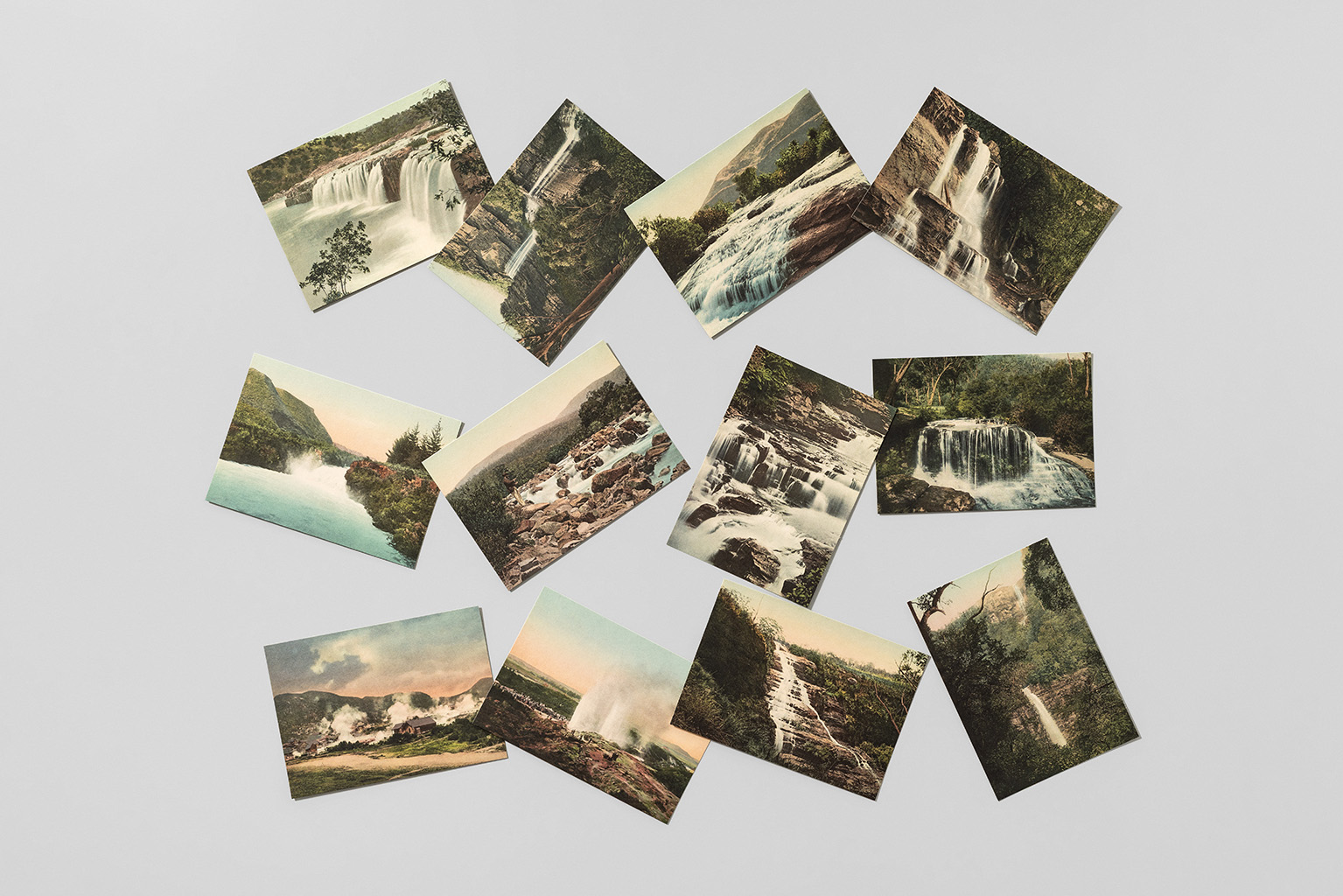 Ces images spectaculaires aux auteurs généralement anonymes sont des photochromes, créations de la maison d’édition suisse Orell Füssli & Cie qui les commercialise sous forme de cartes postales ou d’albums à partir de 1895, via sa filiale Photoglob et la Photochrom Company de Detroit. Réalisé à partir d’un négatif monochrome sur pierres lithographiques (de six à dix), ce procédé qui disparaîtra dans les années 1930 avec l’apparition des premières pellicules couleur rencontre alors un immense succès commercial, qui va de pair avec le développement accéléré du tourisme (de luxe, pour l’heure) et une curiosité géographique générale. À ce titre, l’Australie et la Nouvelle-Zélande sont synonymes d’horizons lointains et fascinants où la nature offre ses plus impressionnantes splendeurs.