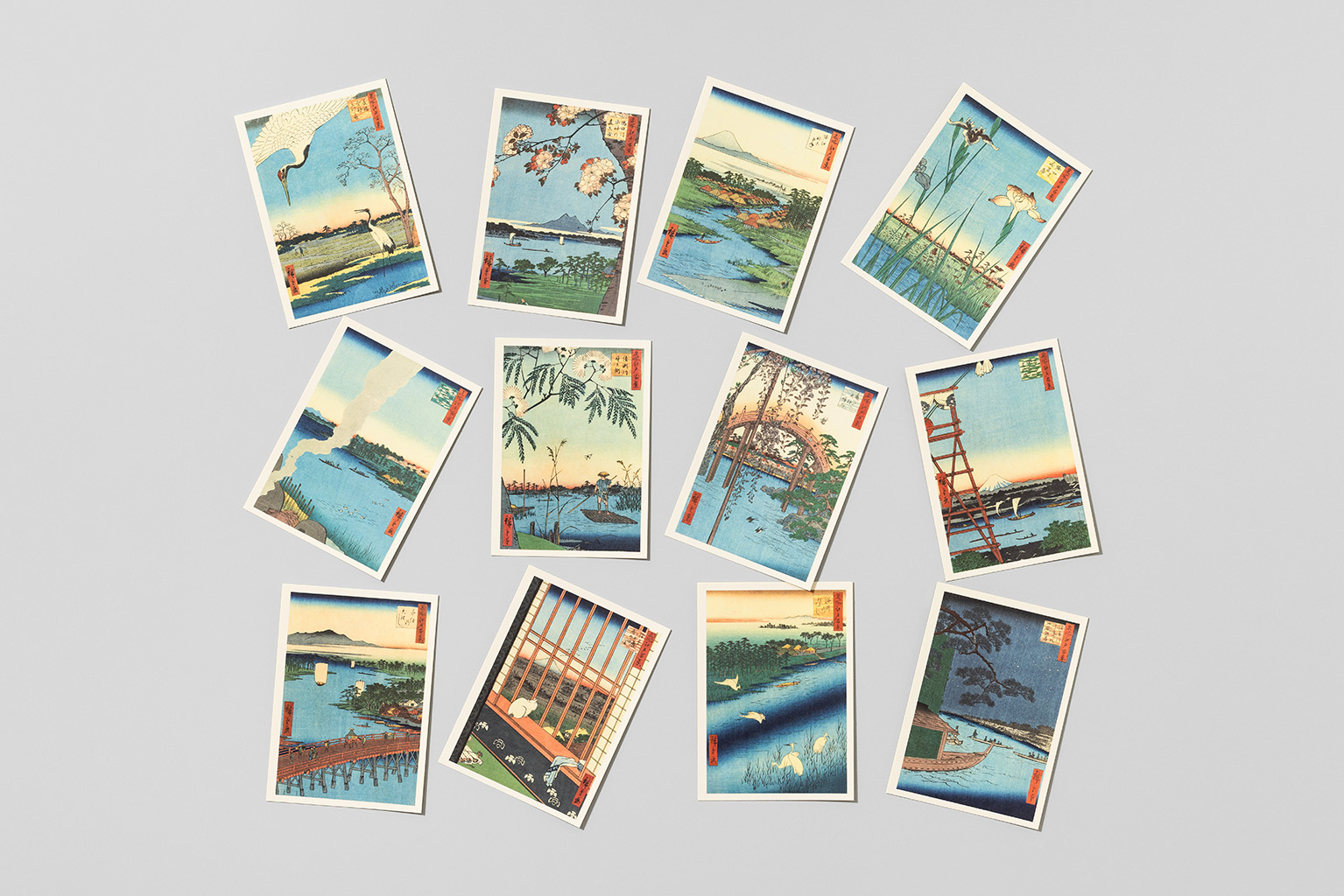 Cents vues d’Edo, chef-d’œuvre ultime d’Hiroshige (1797-1858) composé les deux dernières années de sa vie, rassemble 119 estampes consacrées à sa ville natale, Edo, devenue Tōkyō en 1868. Il relève du genre des meisho-e (« peintures de vues célèbres ») célébrant les paysages japonais, et illustre la maturité de l’art de Hiroshige, où l’abstraction et la composition prennent davantage de place. Hiroshige emploie le format vertical et compose des images dont la précision topographique s’efface quelque peu sous des cadrages insolites, les agrandissements dramatiques et la vivacité des couleurs. Ces estampes en grand format (ōban), groupées selon les saisons de l’année, adoptent ainsi le point de vue de l’humain qui contemple le paysage, et laissent affleurer l’émotion.