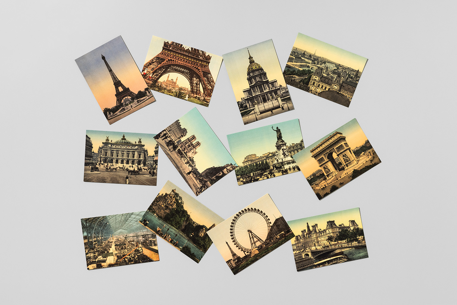 Ces 12 magnifiques planches sont tirées d’un ensemble de photochromes de la Detroit Photographic Company, qui, devenue Detroit Publishing Company en 1905, a acheté à la fin des années 1890 les droits d’utilisation du procédé Photochrom, breveté en Suisse dix ans auparavant : variante de la chromolithographie, il permet à partir d’un film noir et blanc de coloriser et retoucher une image par transfert sur plaques lithographiques, une par couleur. Profitant du Private Mailing Card Act du Congrès américain en 1898, qui accorde aux cartes postales un affranchissement de 1 cent, contre 2 cents pour les lettres, la société inonde le marché national puis mondial : 40 000 négatifs travaillés par 40 artisans, 7 millions de photochromes produits chaque année, et des bureaux à New York, Los Angeles, Londres et Zurich. À Paris comme ailleurs, les preneurs de vues restent anonymes, mais ils nous font admirer ici tous les lieux prestigieux de la capitale (Versailles compris), en y ajoutant la grande roue de l’avenue de Suffren et le palais de l’Électricité du Champ-de-Mars, clous de l’Exposition universelle de 1900, comme la tour Eiffel l’avait été de celle de 1889.