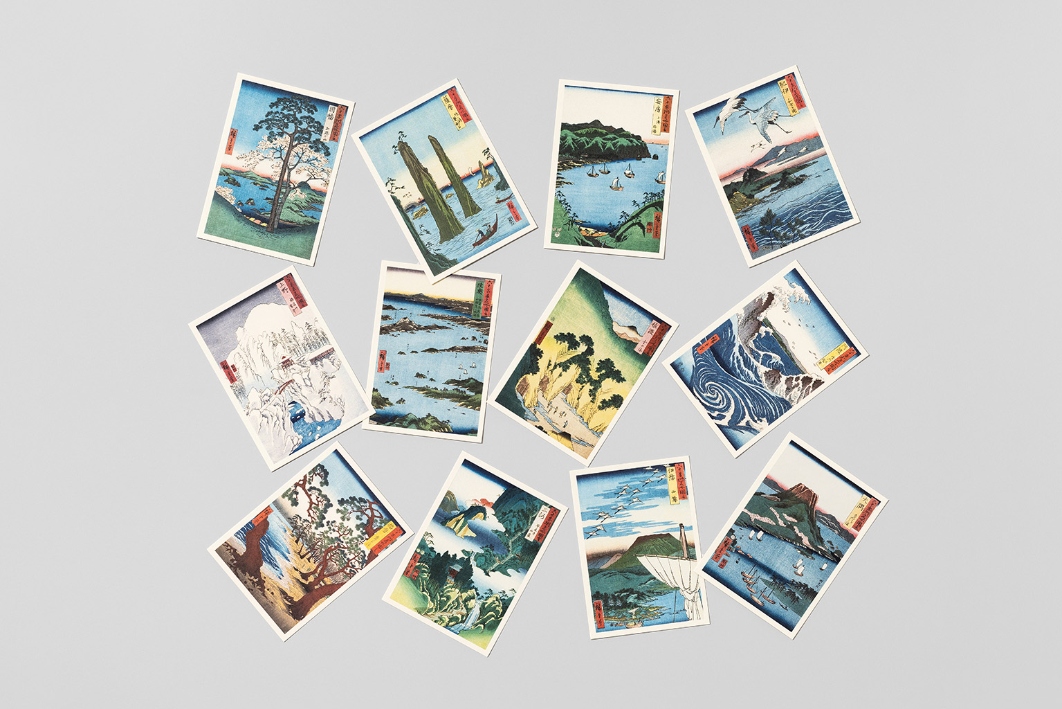 Ces Vues des sites célèbres des soixante et quelques provinces du Japon ont été publiées de 1853 à 1856. Faute de visiter chacune des 68 provinces, leur auteur s’est inspiré des meisho zue (« livres de vues célèbres ») alors populaires. Utagawa Hiroshige est l’un des derniers grands noms de l’ukiyo-e (« images du monde flottant ») qu’il a pratiqué massivement (plus de 8 000 œuvres) en parcourant le Japon et en le transfigurant par son art, célébré depuis Cinquante-trois relais du Tōkaidô (1834). Ses gravures sur bois polychromes, complexes et détaillées, attestent de sa maîtrise du bokashi (technique d’encrage gradué), mais surtout de sa recréation vive et délicate de la nature changeante et de l’humanité affairée, qui inspirera le « japonisme », l’impressionnisme et Van Gogh.