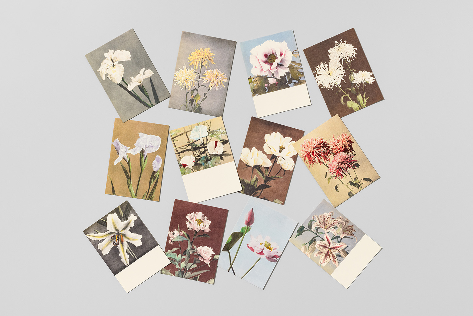 Ces 12 images sont issues de Some Japanese Flowers (« Fleurs japonaises », 1896), où Ogawa Kazumasa associe sa maîtrise de la prise de vues, du collotype et de la colorisation à la main, pour mettre en valeur des fleurs typiquement japonaises, sa passion. Les 38 portraits de fleurs de l’ouvrage renouent avec le hanakotoba (« langage des fleurs ») : le lotus figure la pureté du corps et de l’esprit ; le chrysanthème l’empereur et la famille impériale ; la pivoine le courage ; l’iris la virilité, la santé et la protection… Ogawa s’inspire aussi, pour l’aquarellage, du travail de Kusakabe Kinbei (1841-1934), photographe (et coloriste) de la vie au Japon.