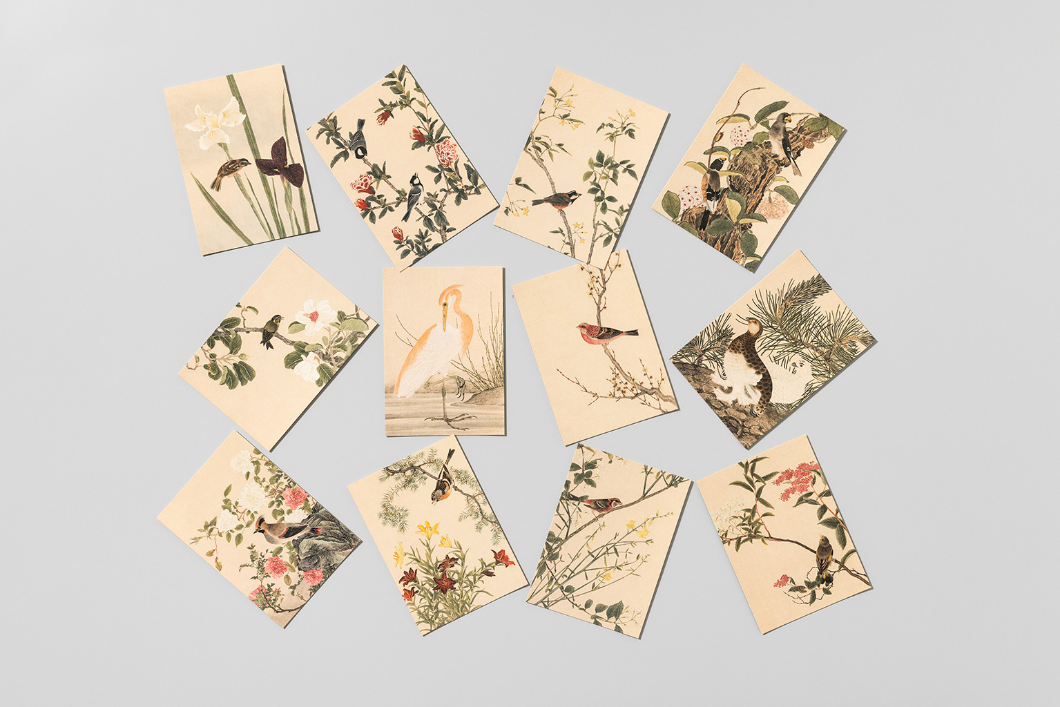 Ces douze images sont tirées d’un gajō (« album de peintures ») de la collection particulière d’Auguste Lesouëf (1829-1906), fils d’un affineur d’or et d’argent, membre érudit de la Société d’ethnographie, petit voyageur et grand bibliophile. Soit 40 lavis en couleurs et or sur papier produits par un artiste œuvrant probablement au XIXe siècle, dans la période d’Edo, qui s’étend de 1600 à 1868. Parmi les thèmes favoris du mouvement artistique de l’ukiyo-e (« images du monde flottant »), deux traitent plus particulièrement de la nature : les meisho-e (« peintures de vues célèbres ») et les kachō-ga (« fleurs et oiseaux »).