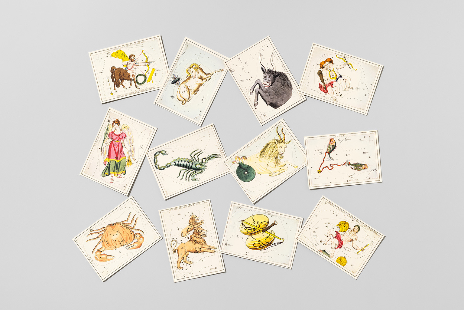 Ces 12 planches proviennent du Urania’s Mirror; or, a view of the Heavens (« Le miroir d’Uranie ; ou, une vue des cieux »), 32 cartes représentant 79 constellations basées sur le Celestial Atlas de l’Écossais Alexander Jamieson (1782-1850). Conçues par l’artiste Sidney Hall, ces images dignes d’Uranie, muse de l’astronomie, s’appuient sur les travaux de l’astronome flamand Johannes Hevelius. Chaque carte représente une constellation, avec les étoiles qui la composent dessinées sous forme de points connectés par des lignes pour former les contours de la figure mythologique associée. Destinées à être utilisées par des amateurs d’astronomie pour identifier les constellations et les étoiles, ces cartes, gravées à la main et colorées à l’aquarelle, ont également été utilisées par des enseignants pour enseigner l’astronomie dans les écoles.