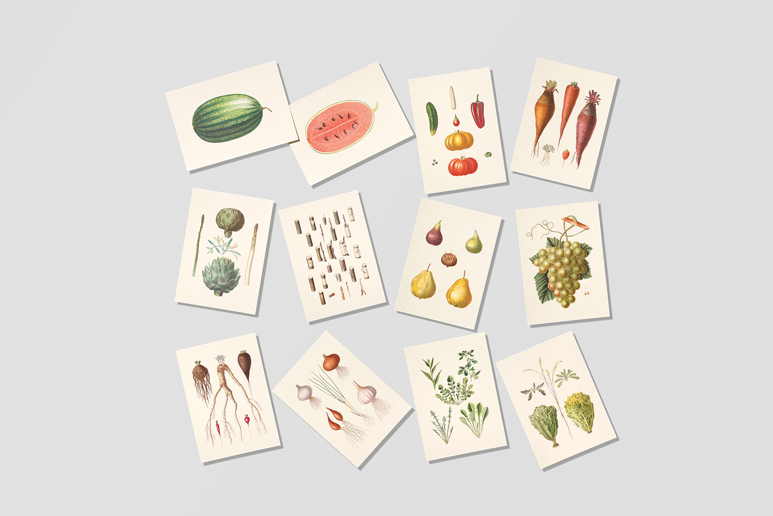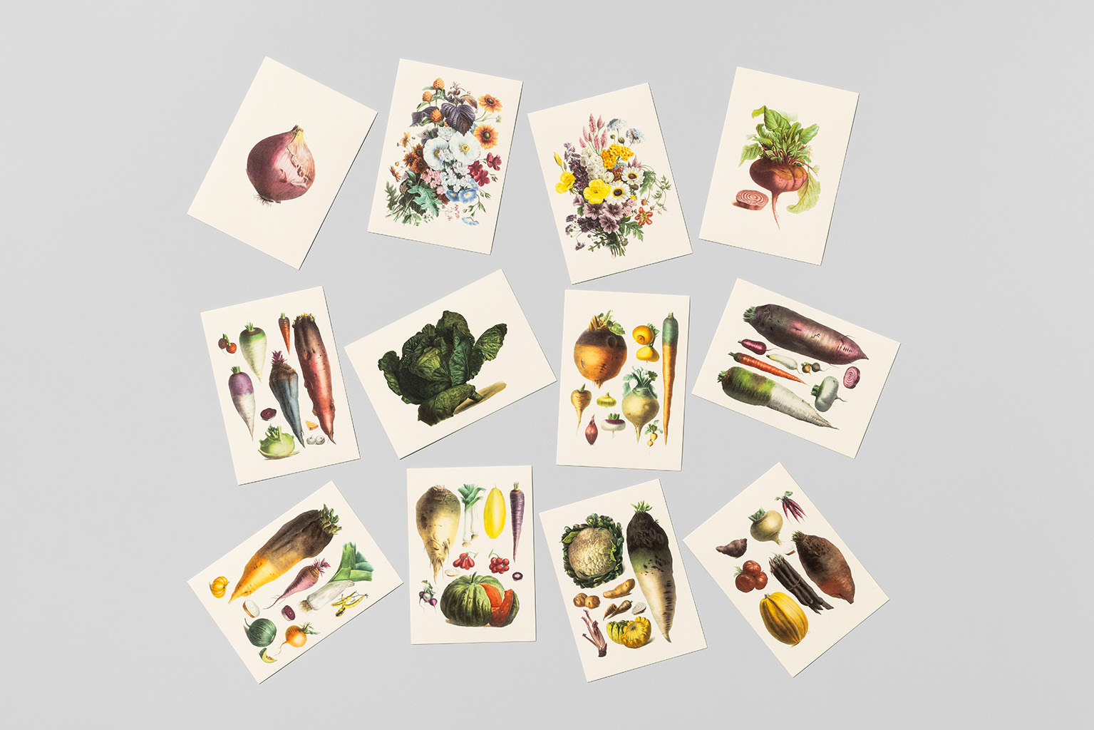 Ces 12 planches représentent des fleurs rustiques, annuelles et vivaces, des légumes et des plantes fourragères. Éditées par Vilmorin-Andrieux et Cie , elles appartiennent au fonds iconographique d’une entreprise éditoriale menée pendant quarante-cinq ans sur « l’extrême diversité des plantes potagères ». Travaillant sur des modèles récoltés au Jardin des plantes, pas moins de quinze artistes ont réalisé les 46 images de cet Album Vilmorin. Au premier rang desquels les fines aquarellistes Joséphine Coutance et Élisa Champin, expertes en fleurs qui ont étudié ensemble à l’École spéciale et gratuite de dessin pour les jeunes personnes, ouverte en 1803 et ancêtre des Arts-déco.