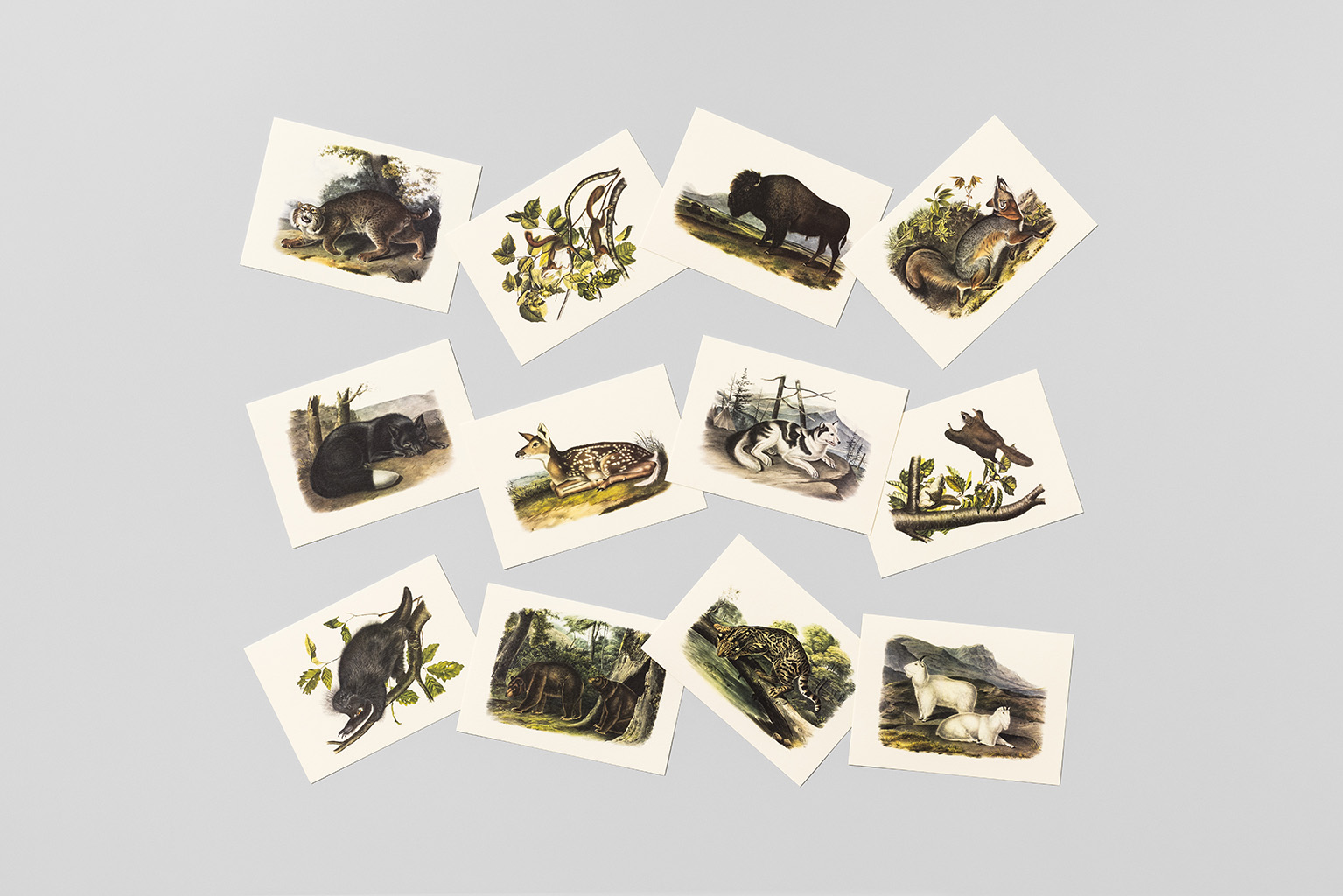 Ces 12 images sont extraites des « Quadrupèdes vivipares d’Amérique du Nord » d’Audubon, trois volumes de 150 planches colorisées et de textes rédigés avec le pasteur zoologue John Bachman (1790-1874). Après le triomphe international de Birds of America, le naturaliste, artiste et coureur des bois Jean-Jacques (naturalisé John James) Audubon, assisté de son deuxième fils pareillement talentueux, John Woodhouse, s’est lancé dans une expédition aventureuse à travers la Prairie américaine, en vue d’une étude exhaustive de ses mammifères. Lynx, panthère ou encore écureuil volant ornent ces planches étonnantes qui ont constitué des documents scientifiques importants sur la faune sauvage de l’Amérique du Nord.