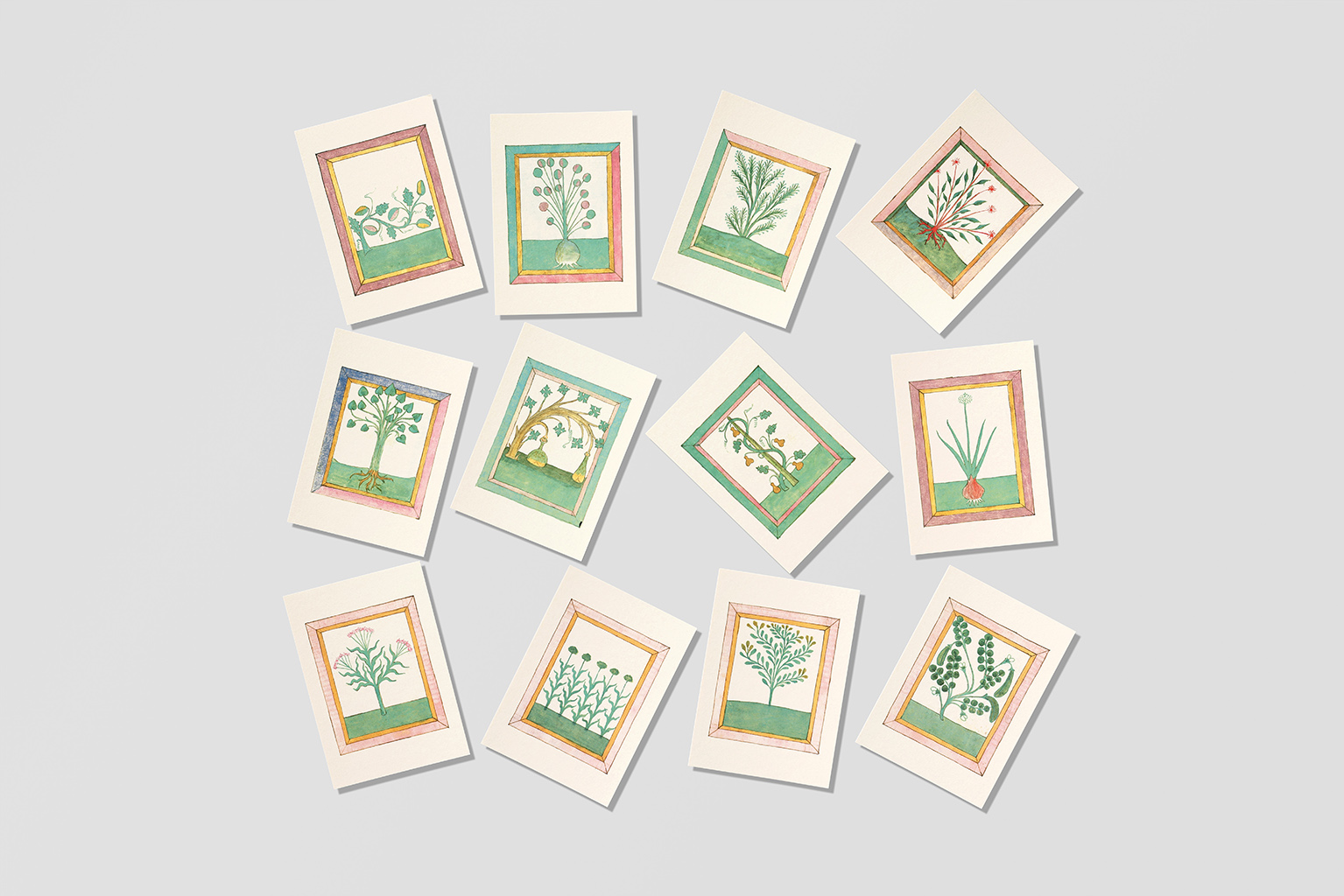 Ces douze planches sont tirées d’un traité réalisé par Johannes Hartlieb et achevé en 1462, le Kraüterbuch (Livre des herbes), qui reprend et amplifie le Buch der Nature, première encyclopédie d’histoire naturelle de langue allemande publiée un siècle plus tôt par le chanoine, entomologiste et météorologue bavarois Konrad von Megenberg (1309-1374). Plutôt qu’un vademecum à l’usage des médecins et des pharmaciens, il faut sans doute voir dans ces 160 illustrations – très colorées mais simplifiées – d’herbacées thérapeutiques (plus quelques animaux, dont certains imaginaires) un ouvrage de prestige destiné à la bibliothèque d’Albert III de Bavière (1438-1460).