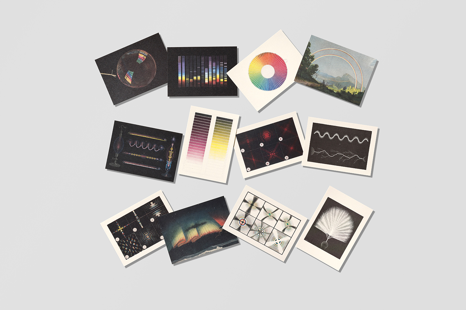 Ces douze images multicolores proviennent des Phénomènes de la physique, ouvrage d’Amédée Guillemin (1826-1893) publié en 1868 chez Hachette. On peut notamment admirer les iridescences provoquées par la double réfraction de la lumière sur des surfaces comme celles des bulles de savon, qui fascinaient Newton. Partant du principe que l’intelligence « puise à deux sources, […] l’Art et la Science », Guillemin fait appel aux lumières de spécialistes de l’électricité et de la physique (François-Pierre Leroux et Ignace Joseph Silbermann), ainsi qu’au talent d’éminents illustrateurs (dont René-Henri Digeon et Maximilien Rapine). En 1882, il intégrera Les Phénomènes de la physique aux cinq volumes du Monde physique, visant à « faire, en un mot, la théorie de l’Univers ».