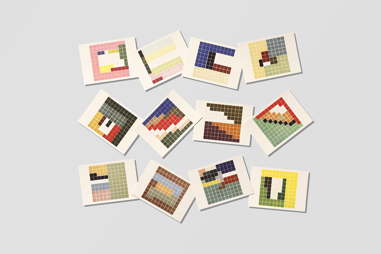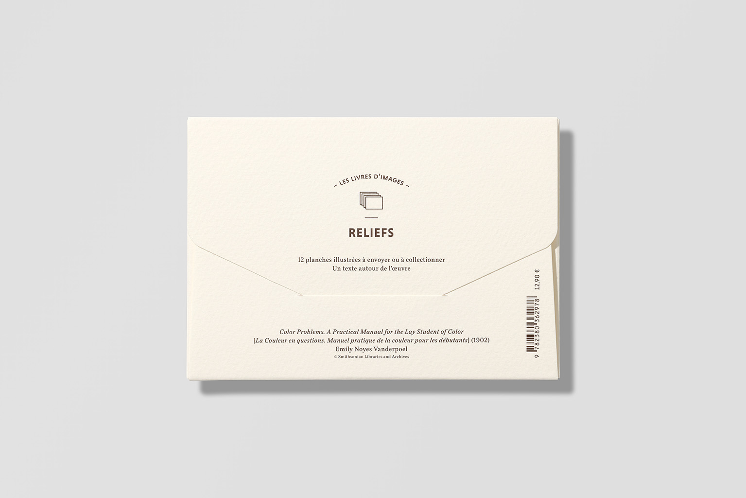 Ces 12 planches font partie des 117 qui illustrent Color Problems (La Couleur en questions), ouvrage d’Emily Noyes Vanderpoel (1842-1939) publié en 1902 à New York par Longmans, Green, and Co. Partant du principe que « la relation de la couleur à la lumière est très semblable à celle de la musique au son », la peintre et historienne propose 400 pages d’étonnantes analyses colorimétriques portant sur divers artefacts – tuiles assyriennes, tapis persans, vases grecs, broderies espagnoles, brocards japonais, porcelaines chinoises – ou objets naturels – pierre, papillon, quartier d’orange, bouquet d’azalées, ciel de crépuscule… Dans sa tentative de quantifier l’effet global de la couleur sur l’imagination, elle décompose ces spécimens en tableaux de 10 × 10 carrés proportionnels aux différentes teintes perçues, anticipant d’une dizaine d’années les recherches pionnières de l’art abstrait.