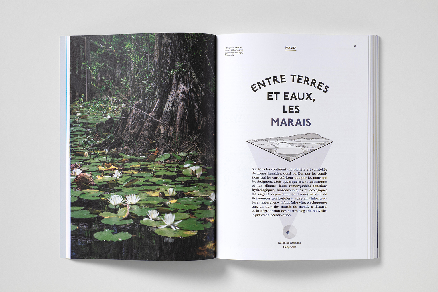 Dossier Marais : la longue histoire des relations entre les marais et les êtres humains par Jean-Michel Derex, la biodiversité et le fonctionnement écologique des zones humides par Delphine Gramond, les mangroves, écosystème riche mais menacé par François Fromard, un entretien avec le paludier Charles Perraud, extraits littéraires illustrés, infographies, conseils de livres, de films, de musique…