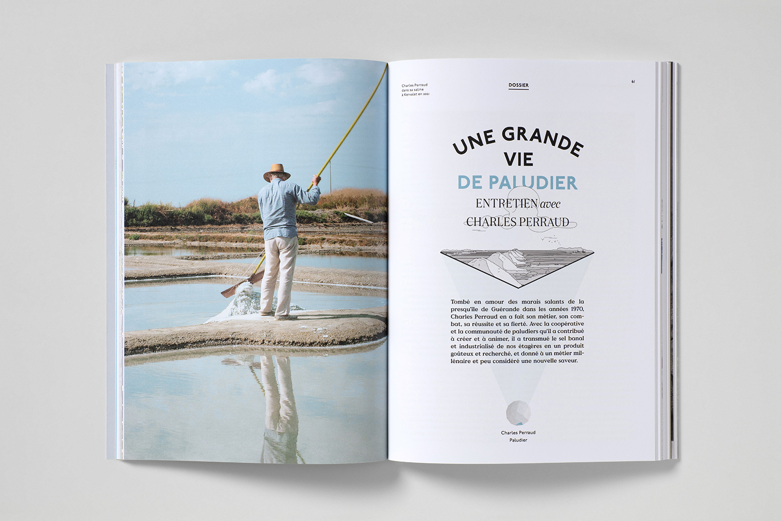 Tombé en amour des marais salants de la presqu’île de Guérande dans les années 1970, Charles Perraud en a fait son métier, son combat, sa réussite et sa fierté. Avec la coopérative et la communauté de paludiers qu’il a contribué à créer et à animer, il a transmué le sel banal et industrialisé de nos étagères en un produit goûteux et recherché, et donné à un métier millénaire et peu considéré une nouvelle saveur.